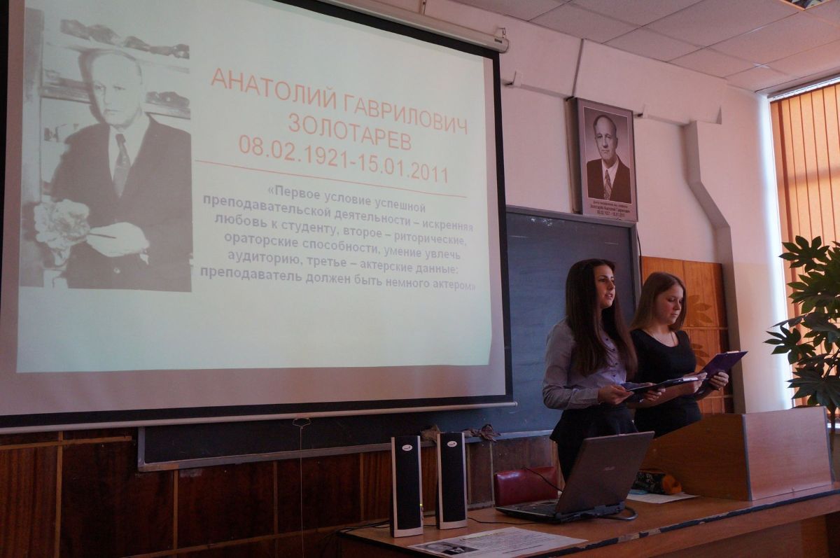 Ученики А. Г. Золотарева, преподаватели и нынешние студенты географического факультета посвятили время воспоминаниям о талантливом ученом. Его ученики рассказывали истории о том, как будучи студентами, они ходили на занятия к Золотареву, тщательно готовились к его предметам. Присутствующие имели возможность услышать знаменитый ораторский голос Анатолия Гавриловича, его рассуждения о родном университете и факультете.