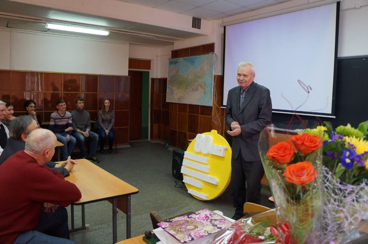 11 марта на факультете состоялось ПОЗДРАВЛЕНИЕ с 80-летним ЮБИЛЕЕМ доцента кафедры географии, картографии и геосистемных технологий Виктора Михайловича Белоусова, вся сознательная жизнь которого от обучения до преподавания связана с географическим факультетом Иркутского государственного университета.