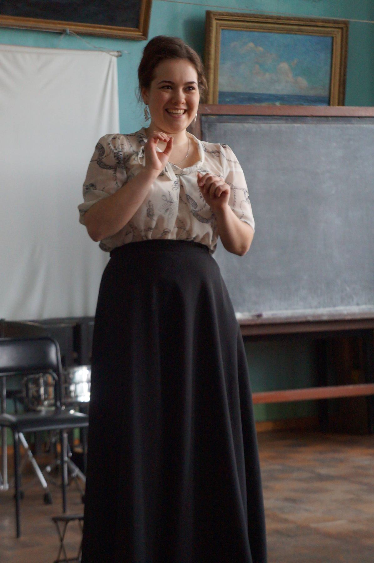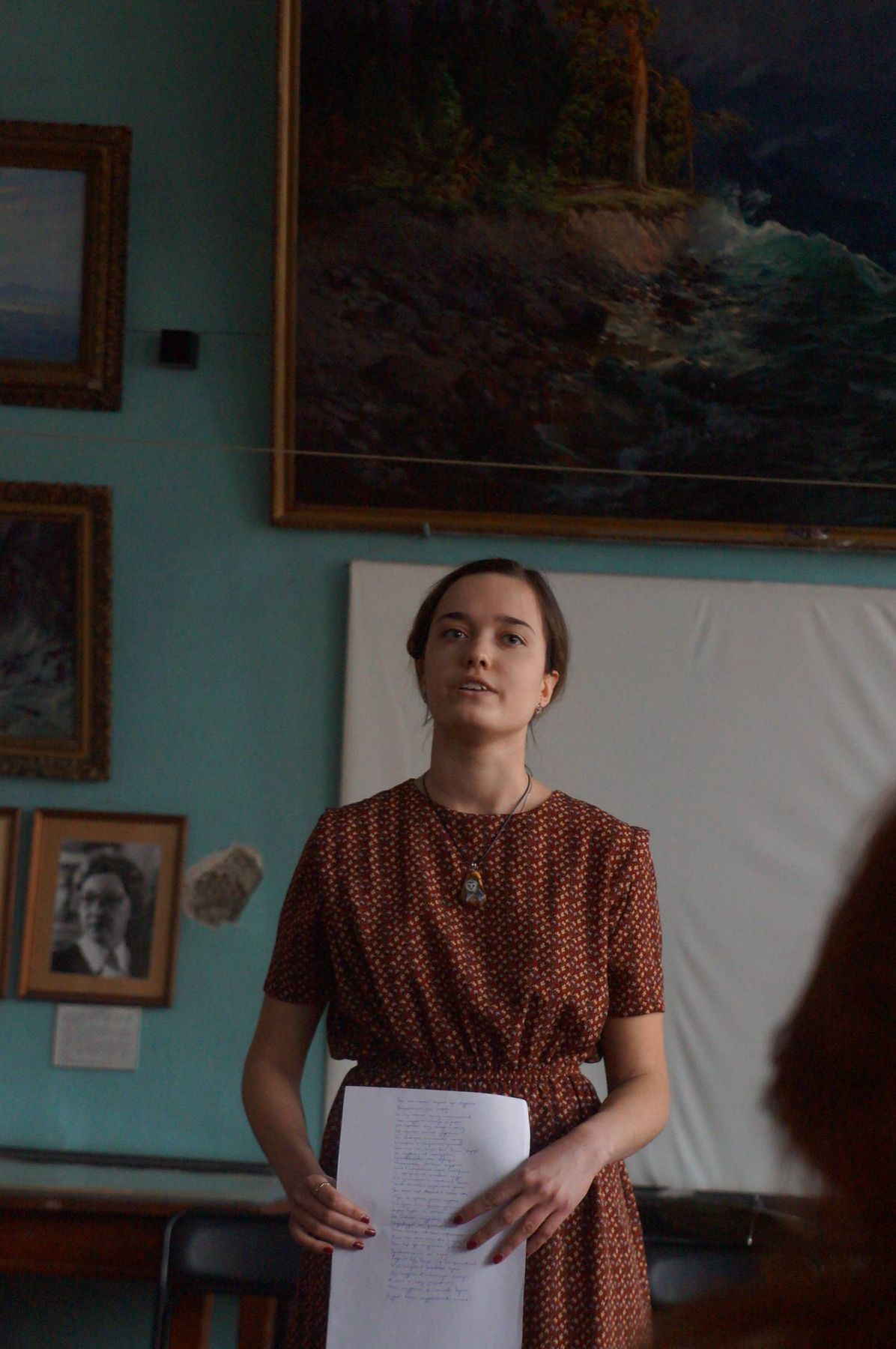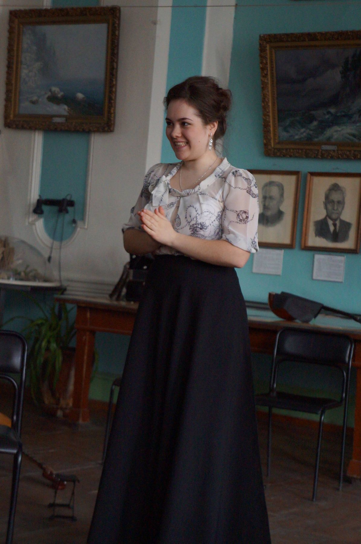 В некотором роде я считаю себя идейным вдохновителем рождения наших гостиных. И поэтому, мне всегда радостно, что у ребят все получается, что много молодых людей любят поэзию, сам антураж «гостиных». Действительно, аура в музее Байкала – особенная. Дух, что ли, байкальский от живописи присутствует, или собравшиеся его так излучают, что в часы такого прекрасного досуга не замечаешь течения времени, а наслаждаешься новыми открытиями в поэзии, в людях, в музыке. Благодаря Полине Русановой, а именно она теперь «ХОЗЯЙКА гостиной», наши гостиные стали столь музыкальны. Родился еще один союз «ведущих» - Полина и Юрий Литвяк.