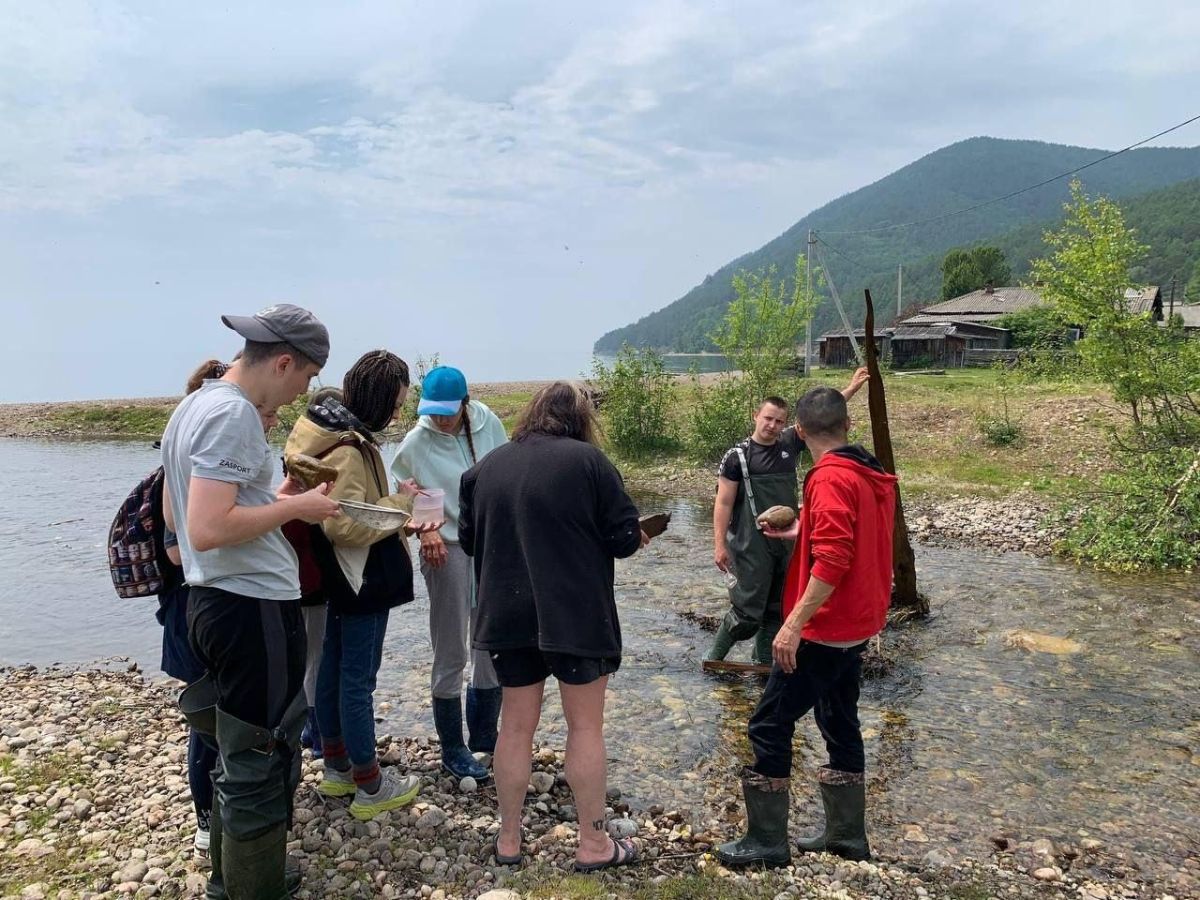 Ребята отбирали пробы гидробионтов как на точке номер один, которая занесена в книгу рекордов Гиннеса, как самый длинный непрерывный ряд наблюдений на озерах, так и возле уреза воды оз. Байкал, рек, вытекающих в озеро и озёрцах, которые оставила драга. Посетили полевую лабораторию водной токсикологии НИИ биологии ИГУ.