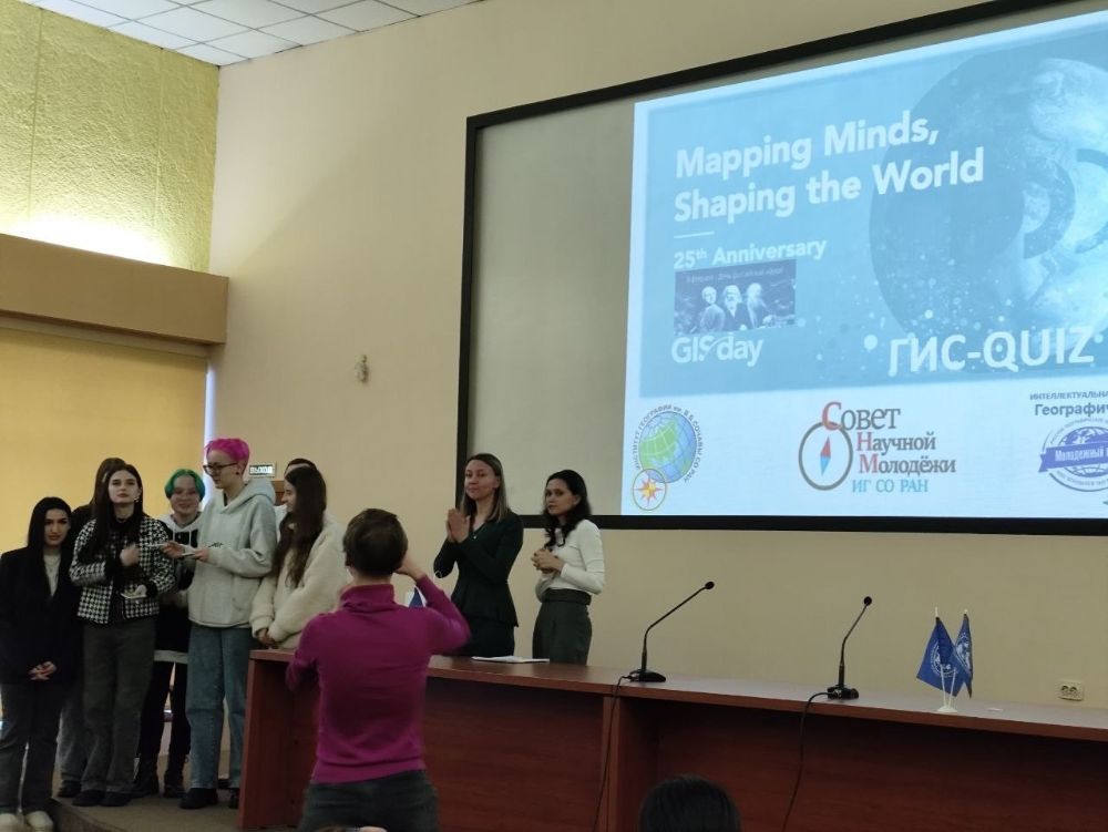 После заслушивания докладов студенты поучаствовали в интеллектуальной игре «ГИС-QUIZ». Победу одержали студенты 2 курса направления «География». В завершении мероприятия для желающих была организована экскурсия в музей и библиотеку Института географии СО РАН.